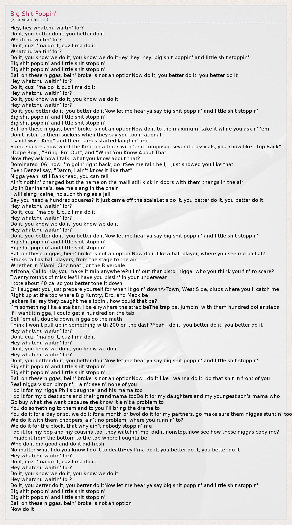 А как ты думаешь, о чем песня "Big Shit Poppin'" ?