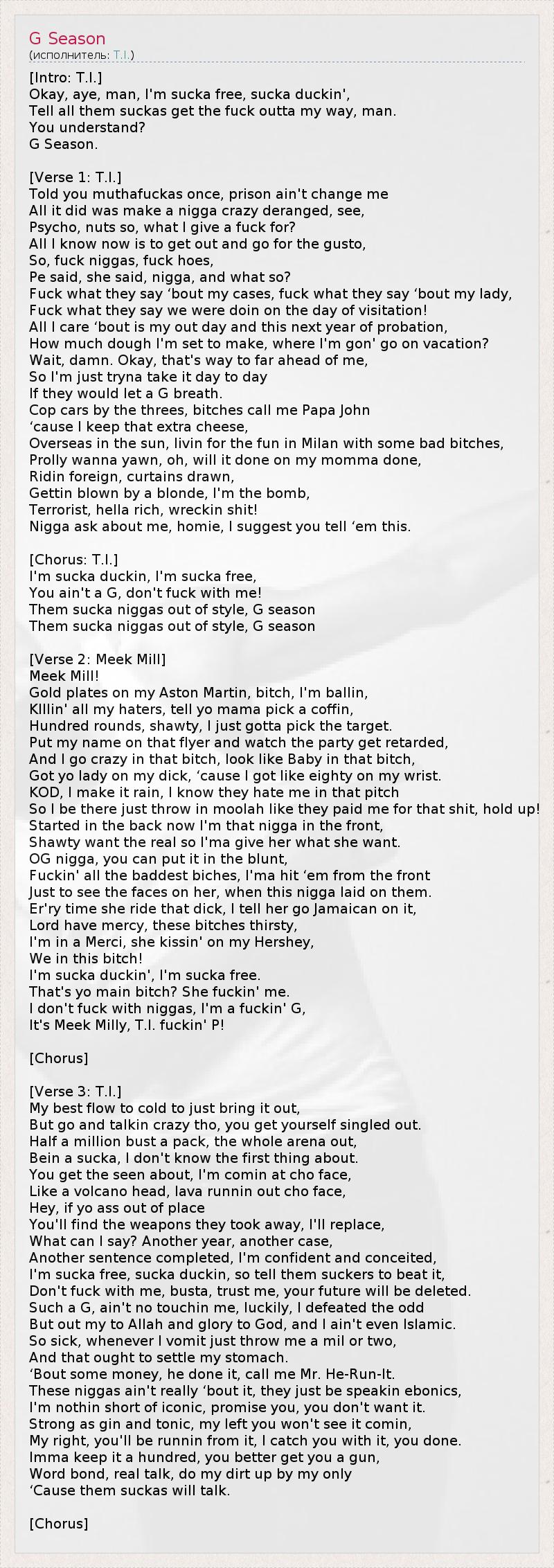 А как ты думаешь, о чем песня "G Season" ?