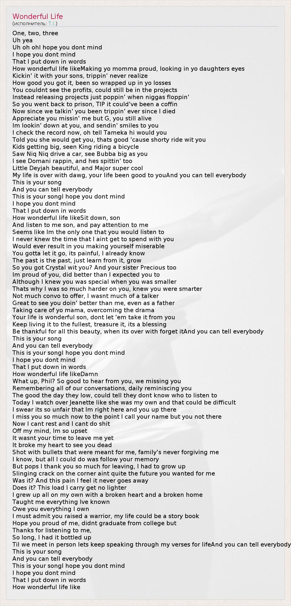 How wonderful life likeMaking yo momma proud, looking in yo daughters eyes