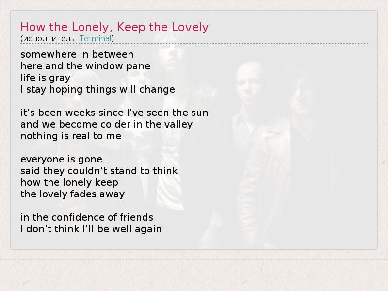 А как ты думаешь, о чем песня "How the Lonely, Keep the Lovely" ?