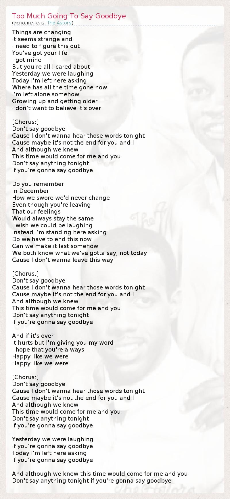 А как ты думаешь, о чем песня "Too Much Going To Say Goodbye" ?