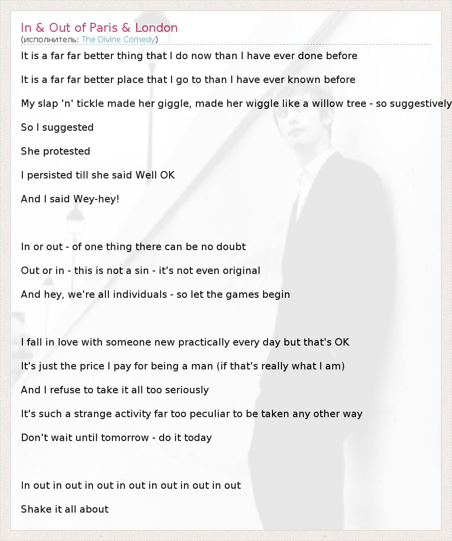 А как ты думаешь, о чем песня "In & Out of Paris & London" ?