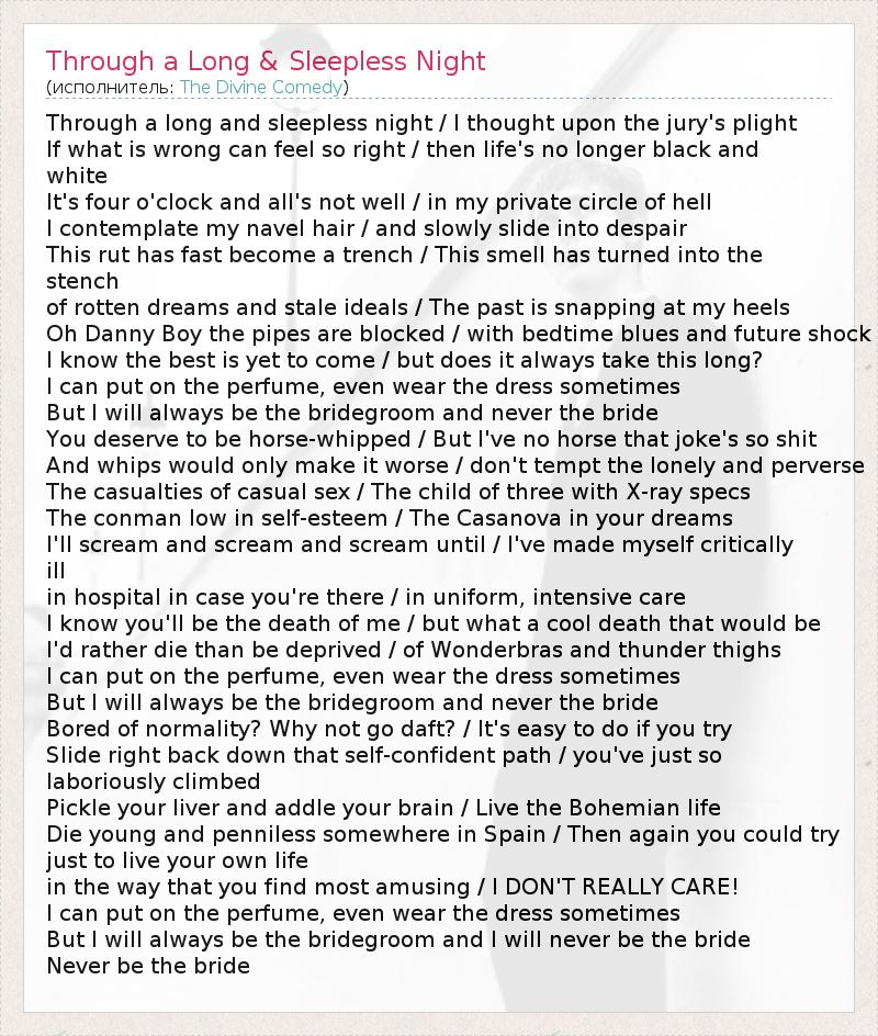 А как ты думаешь, о чем песня "Through a Long & Sleepless Night" ?