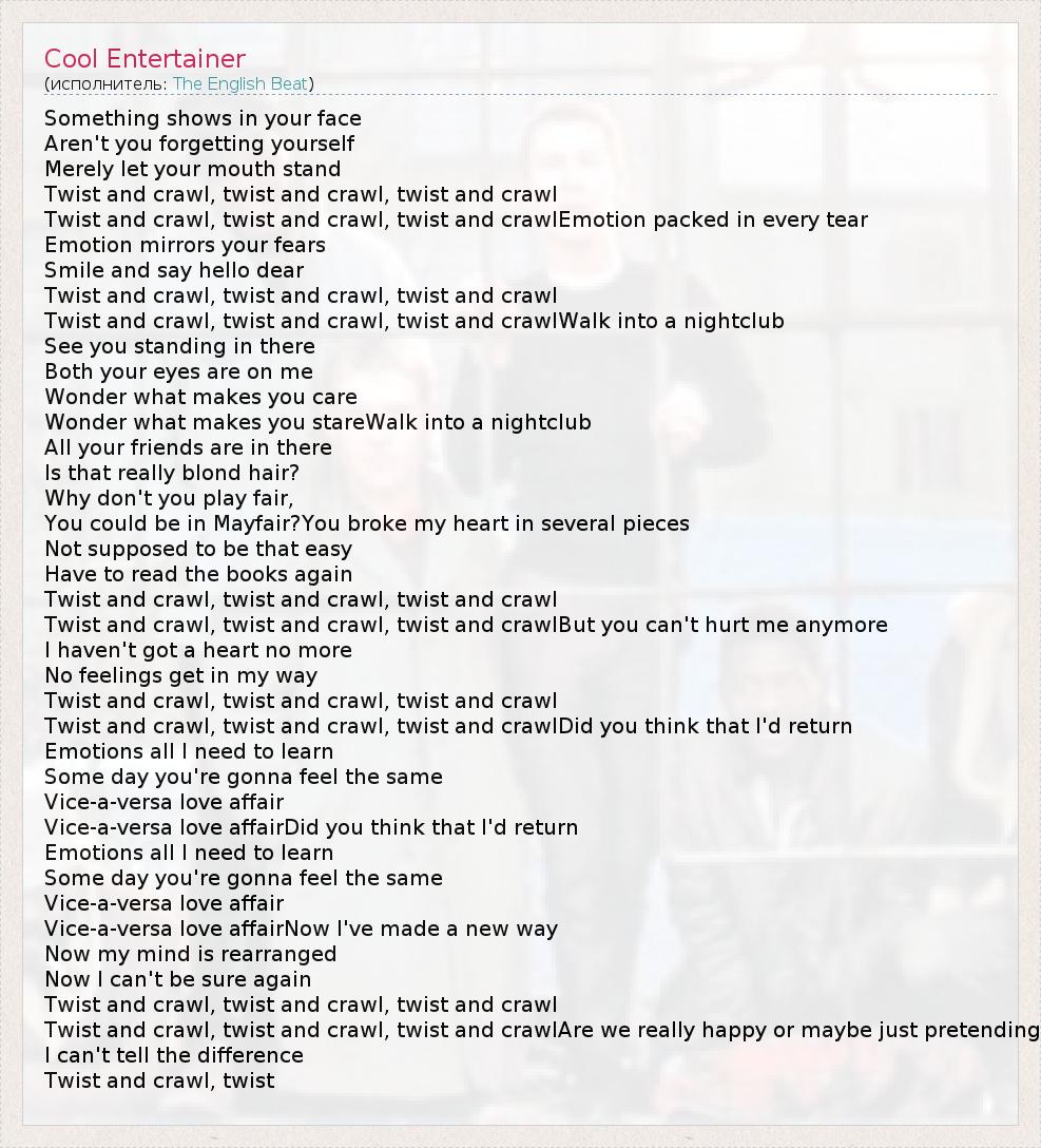 Twist and crawl, twist and crawl, twist and crawlAre we really happy or maybe just pretending
