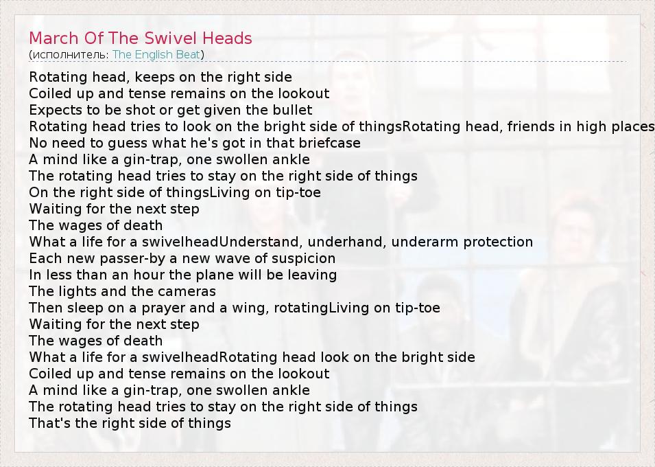 А как ты думаешь, о чем песня "March Of The Swivel Heads" ?