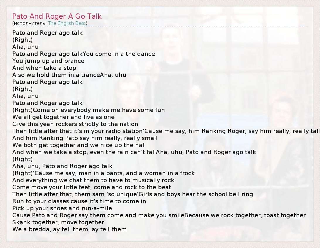 А как ты думаешь, о чем песня "Pato And Roger A Go Talk" ?
