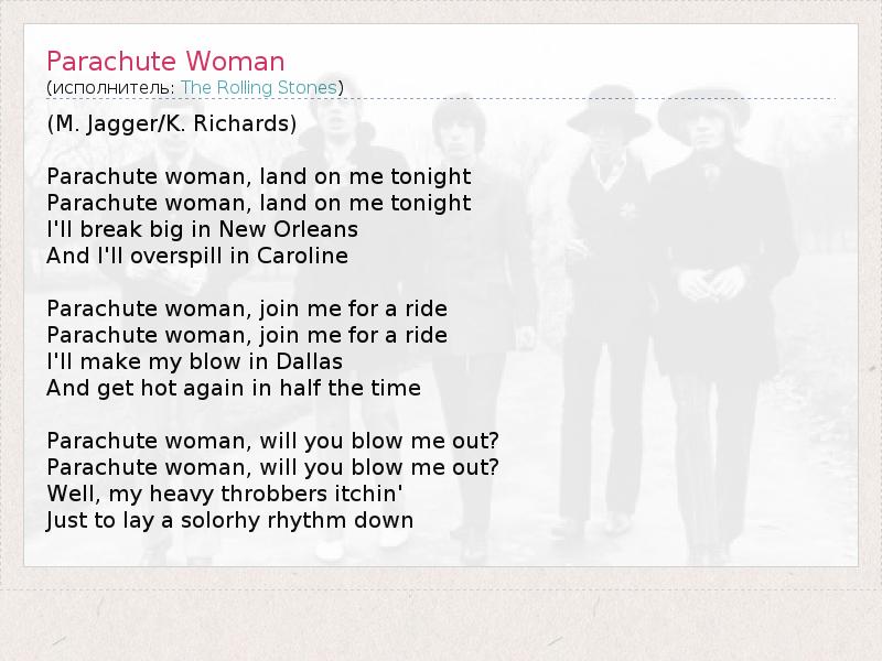 А как ты думаешь, о чем песня "Parachute Woman" ?