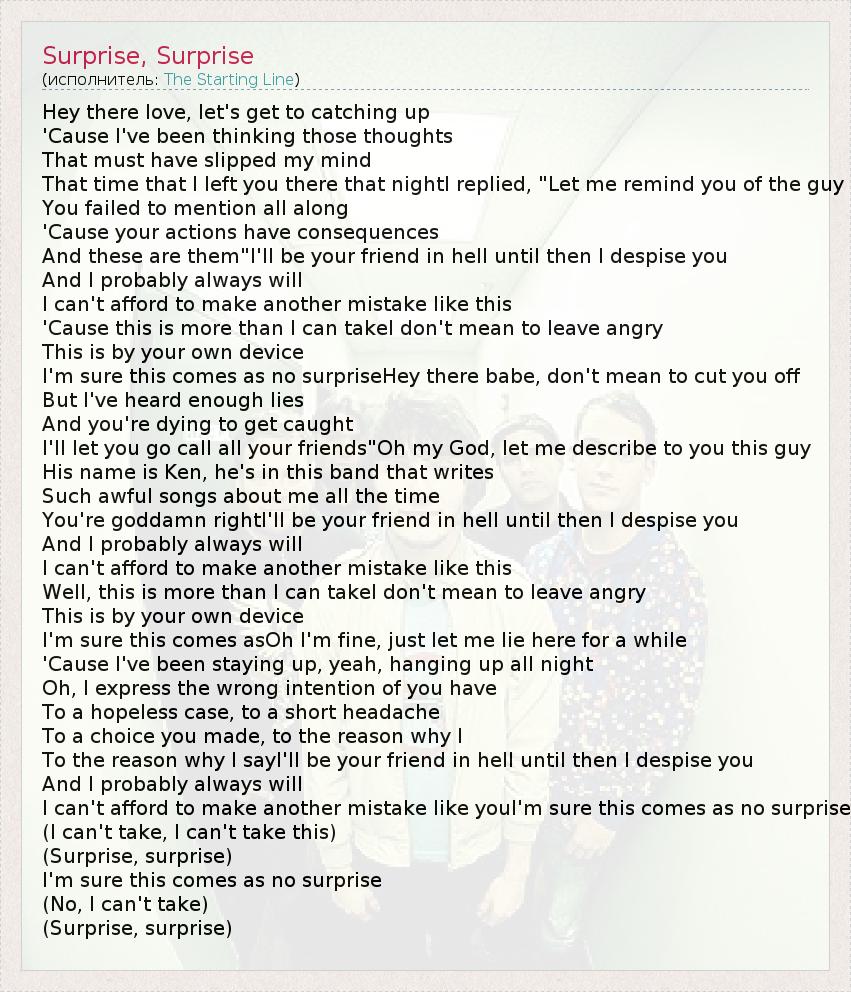 А как ты думаешь, о чем песня "Surprise, Surprise" ?