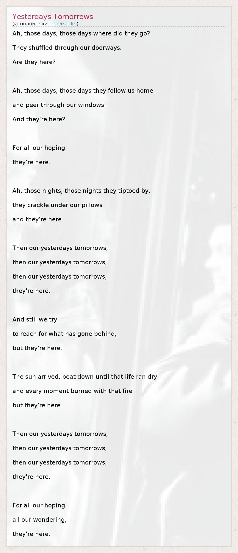 А как ты думаешь, о чем песня "Yesterdays Tomorrows" ?