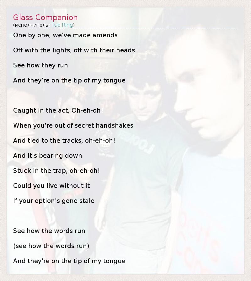 А как ты думаешь, о чем песня "Glass Companion" ?