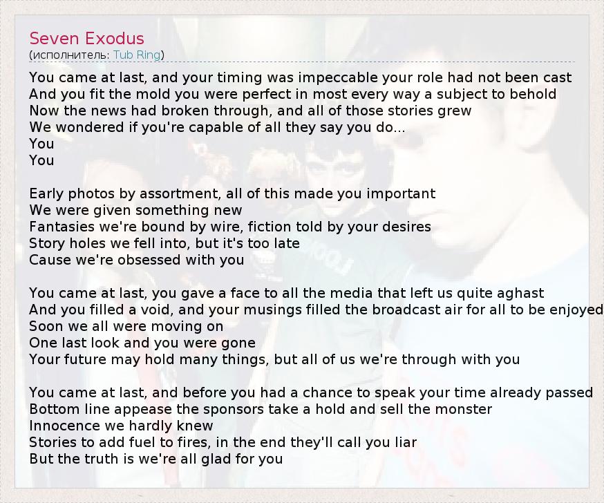 А как ты думаешь, о чем песня "Seven Exodus" ?