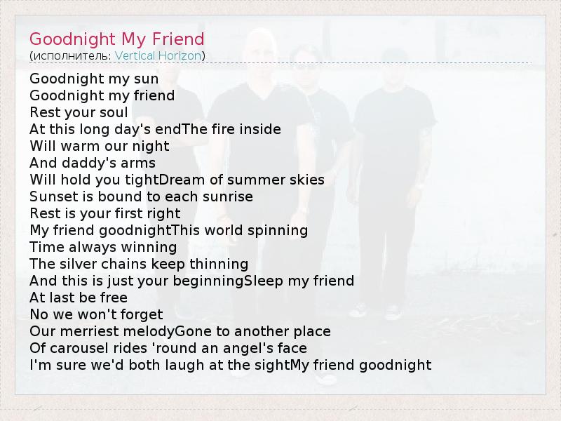 А как ты думаешь, о чем песня "Goodnight My Friend" ?