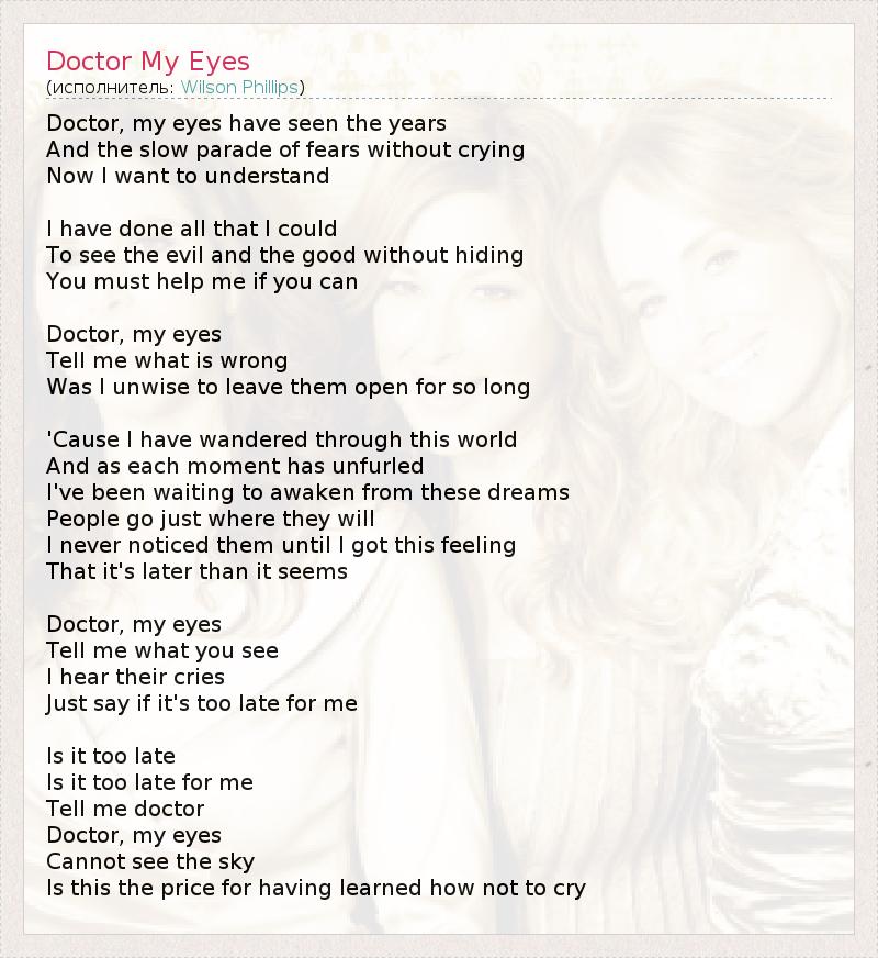 А как ты думаешь, о чем песня "Doctor My Eyes" ?