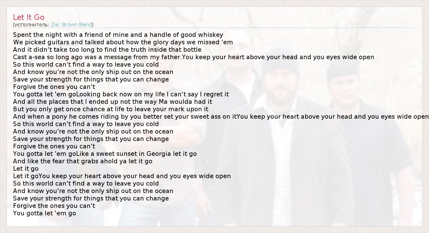 You gotta let 'em goLike a sweet sunset in Georgia let it go