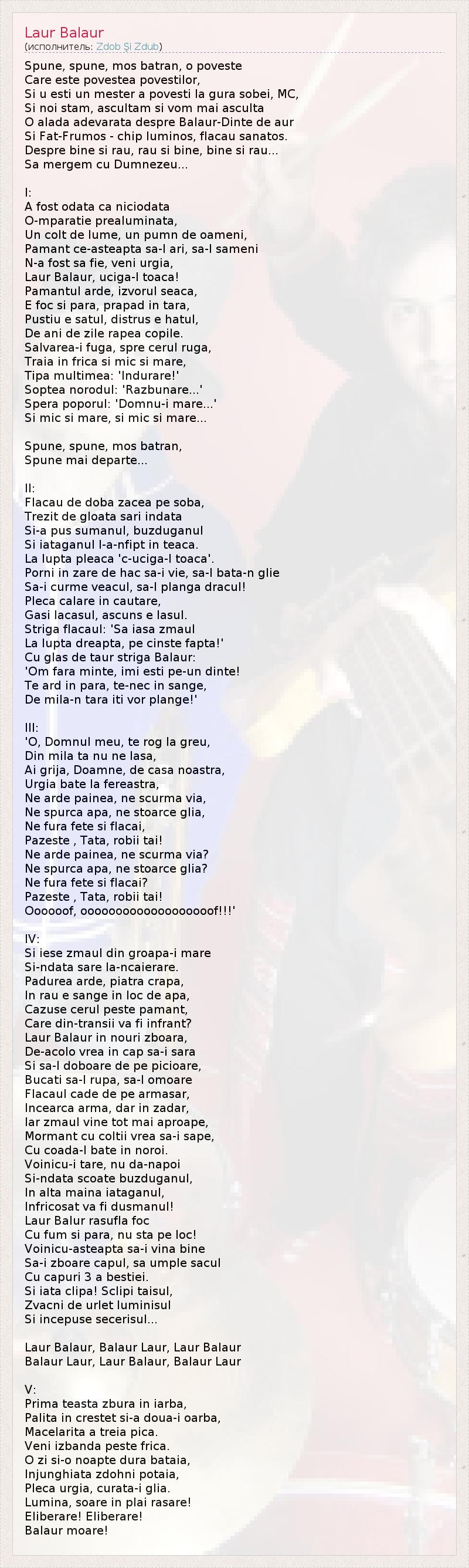 А как ты думаешь, о чем песня "Laur Balaur" ?