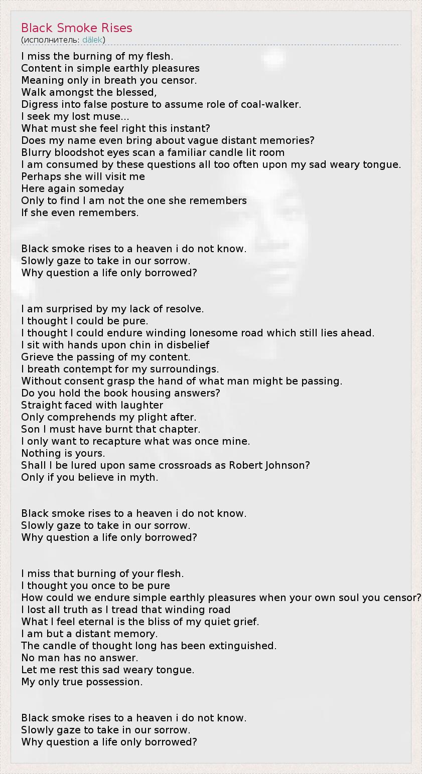 А как ты думаешь, о чем песня "Black Smoke Rises" ?