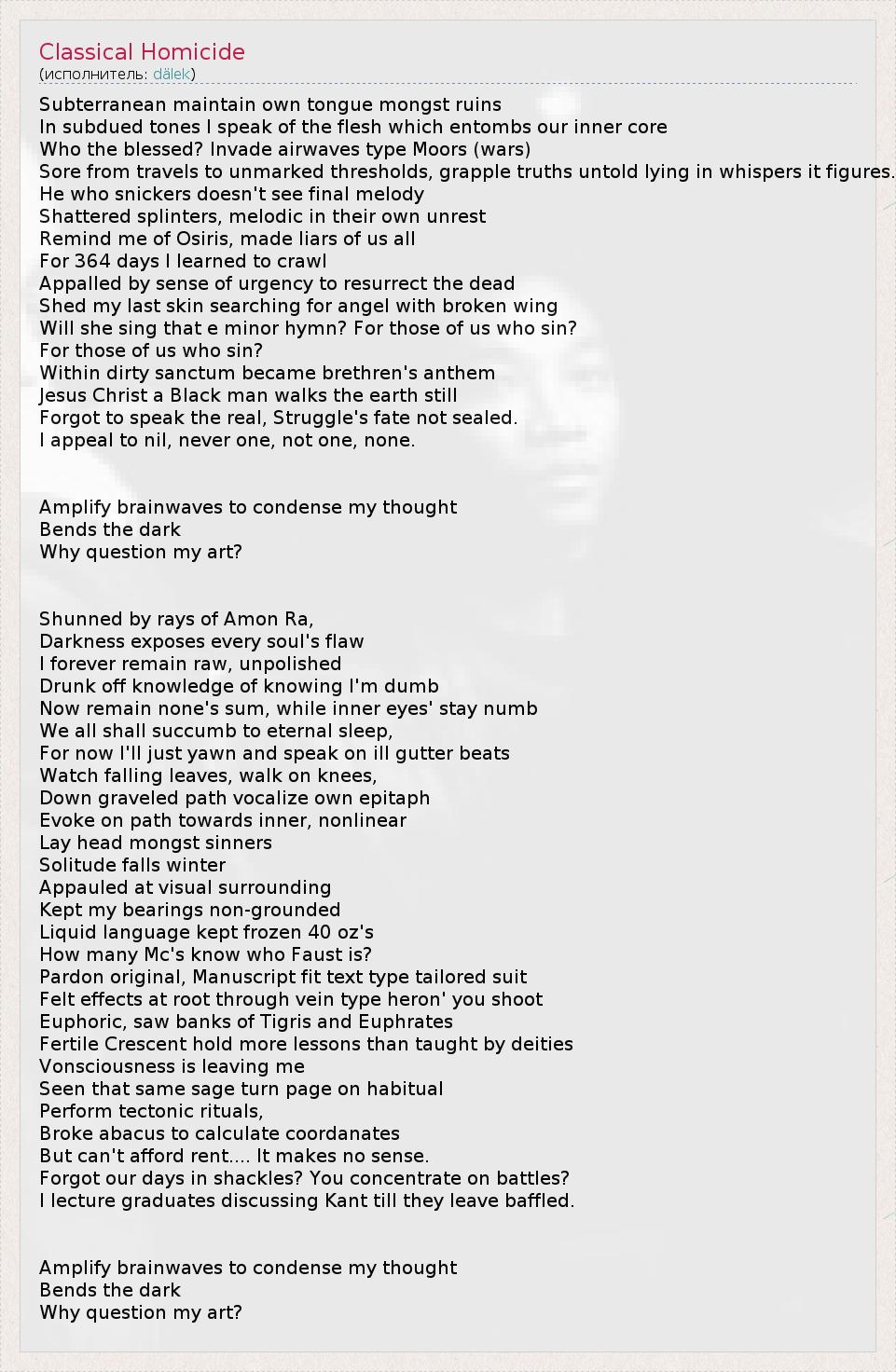 А как ты думаешь, о чем песня "Classical Homicide" ?