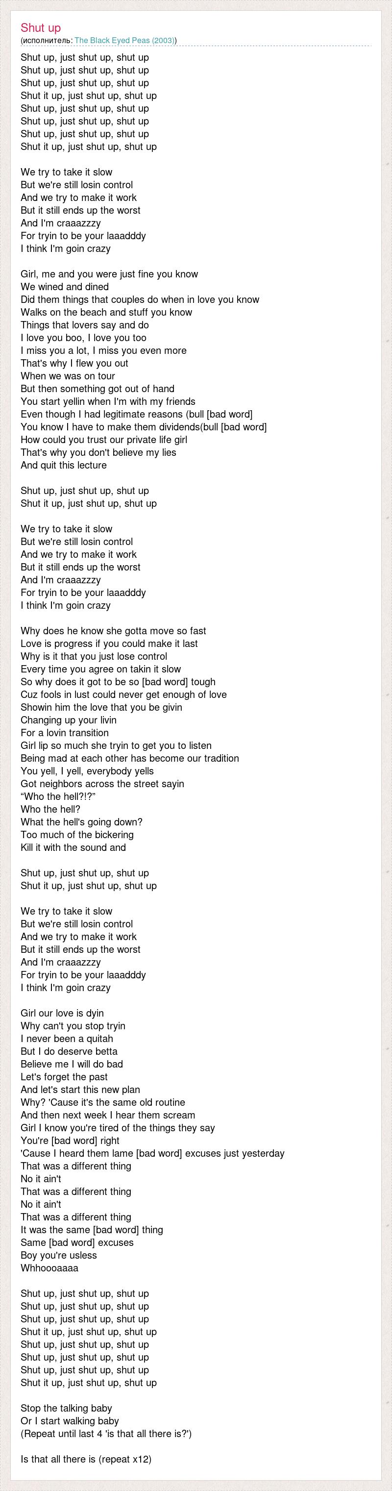 А как ты думаешь, о чем песня "Shut up, just shut up, shut up" ?