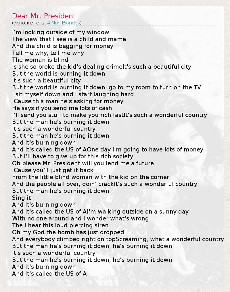 А как ты думаешь, о чем песня "Dear Mr. President" ?