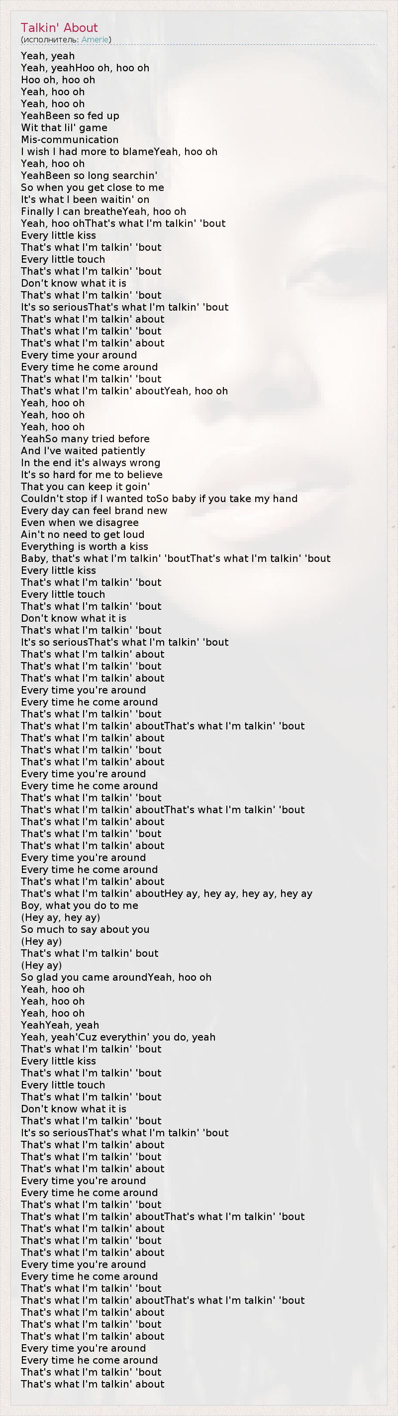 А как ты думаешь, о чем песня "Talkin' About" ?