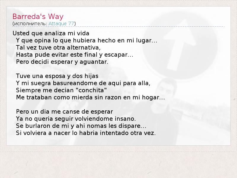 А как ты думаешь, о чем песня "Barreda's Way" ?