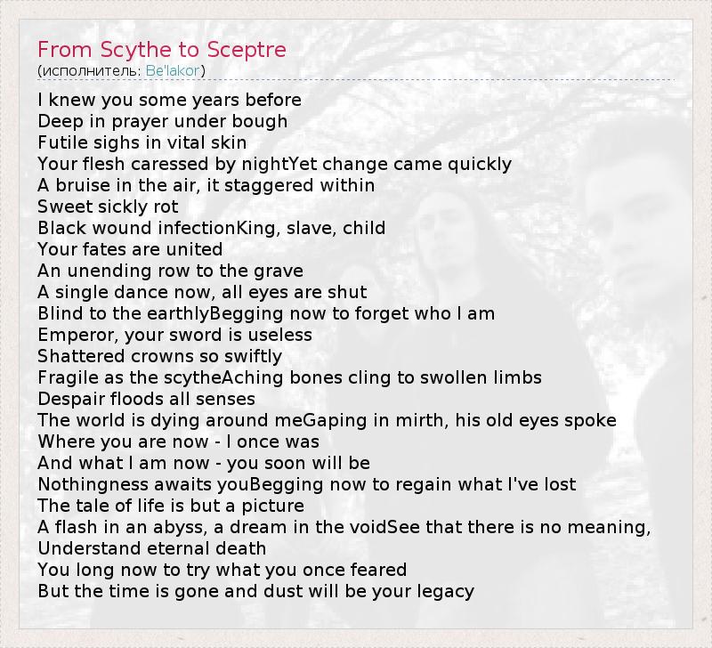 ГлавнаяИсполнителиBe'lakorFrom Scythe to Sceptre