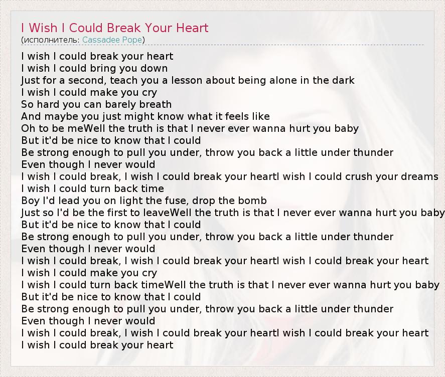 А как ты думаешь, о чем песня "I Wish I Could Break Your Heart" ?