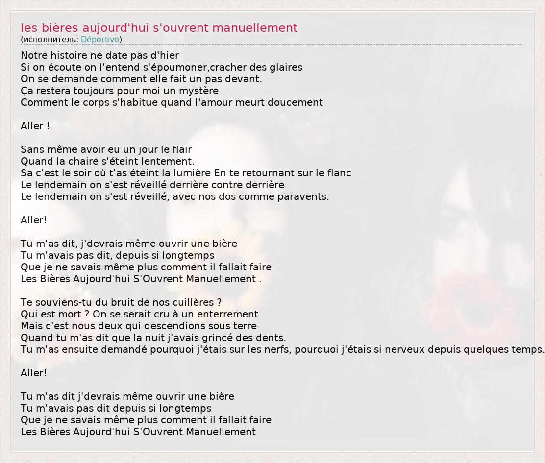 А как ты думаешь, о чем песня "les bières aujourd'hui s'ouvrent manuellement" ?
