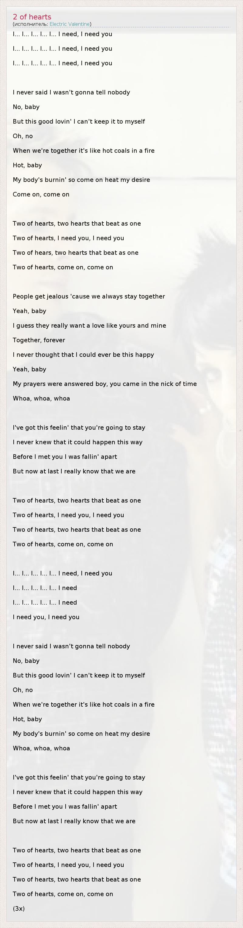 А как ты думаешь, о чем песня "2 of hearts" ?