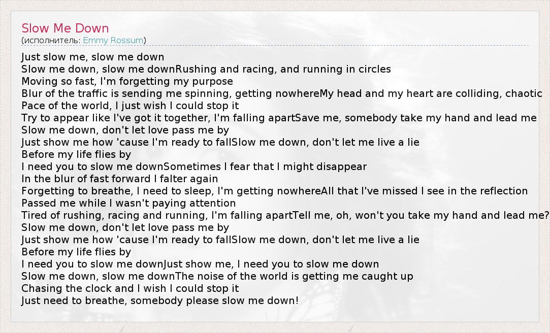 А как ты думаешь, о чем песня "Slow Me Down" ?