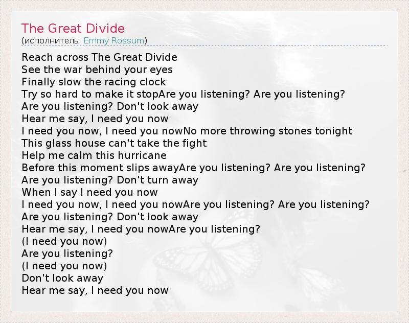 А как ты думаешь, о чем песня "The Great Divide" ?
