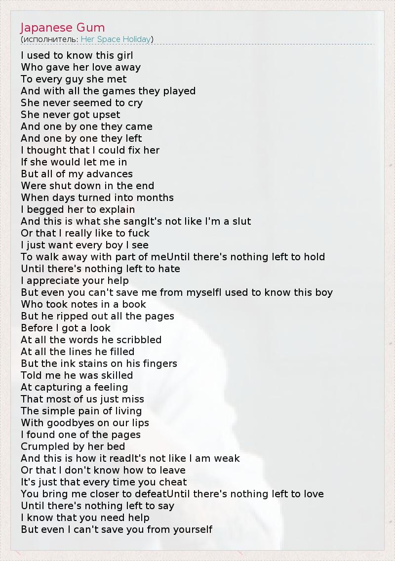 А как ты думаешь, о чем песня "Japanese Gum" ?