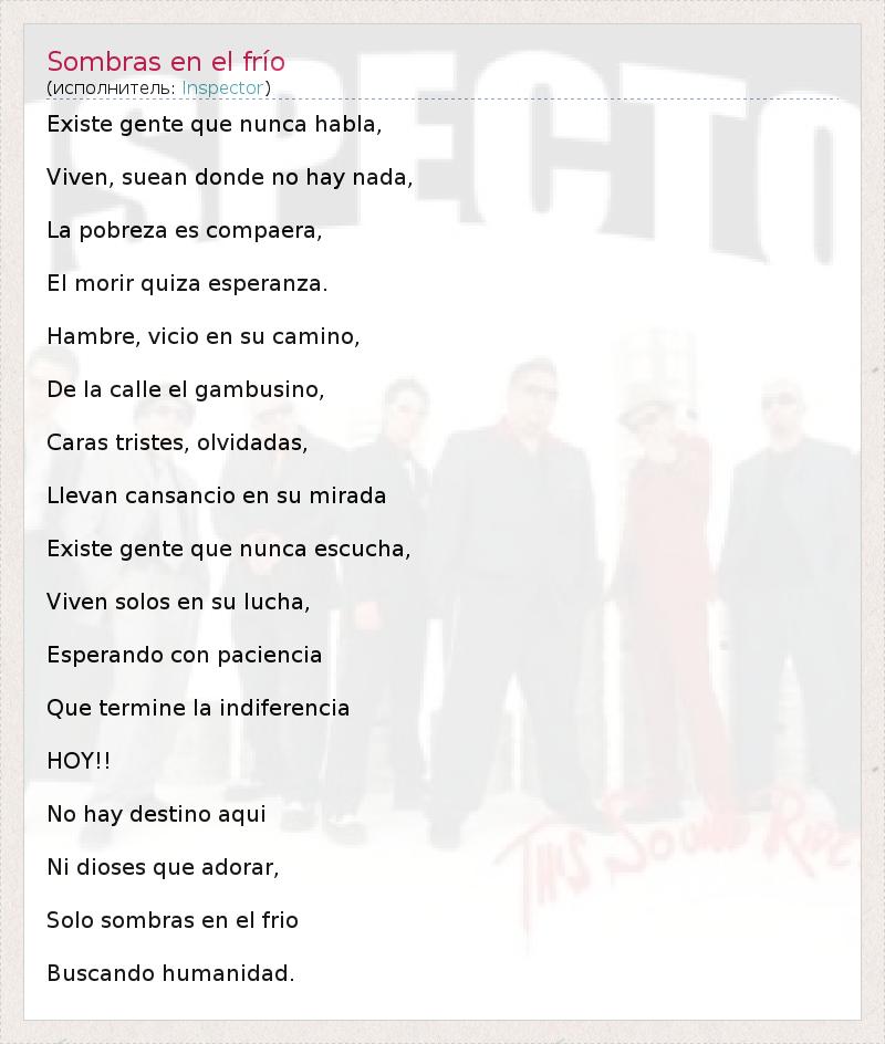 А как ты думаешь, о чем песня "Sombras en el frío" ?
