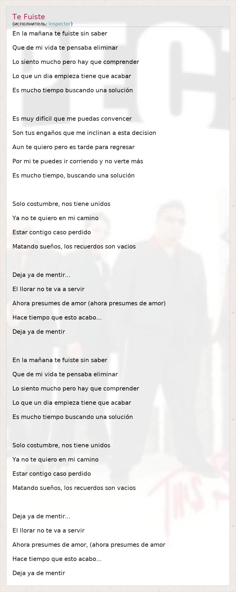 А как ты думаешь, о чем песня "Te Fuiste" ?