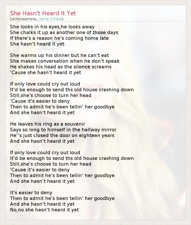 ГлавнаяИсполнителиJamie O'NealShe Hasn't Heard It Yet