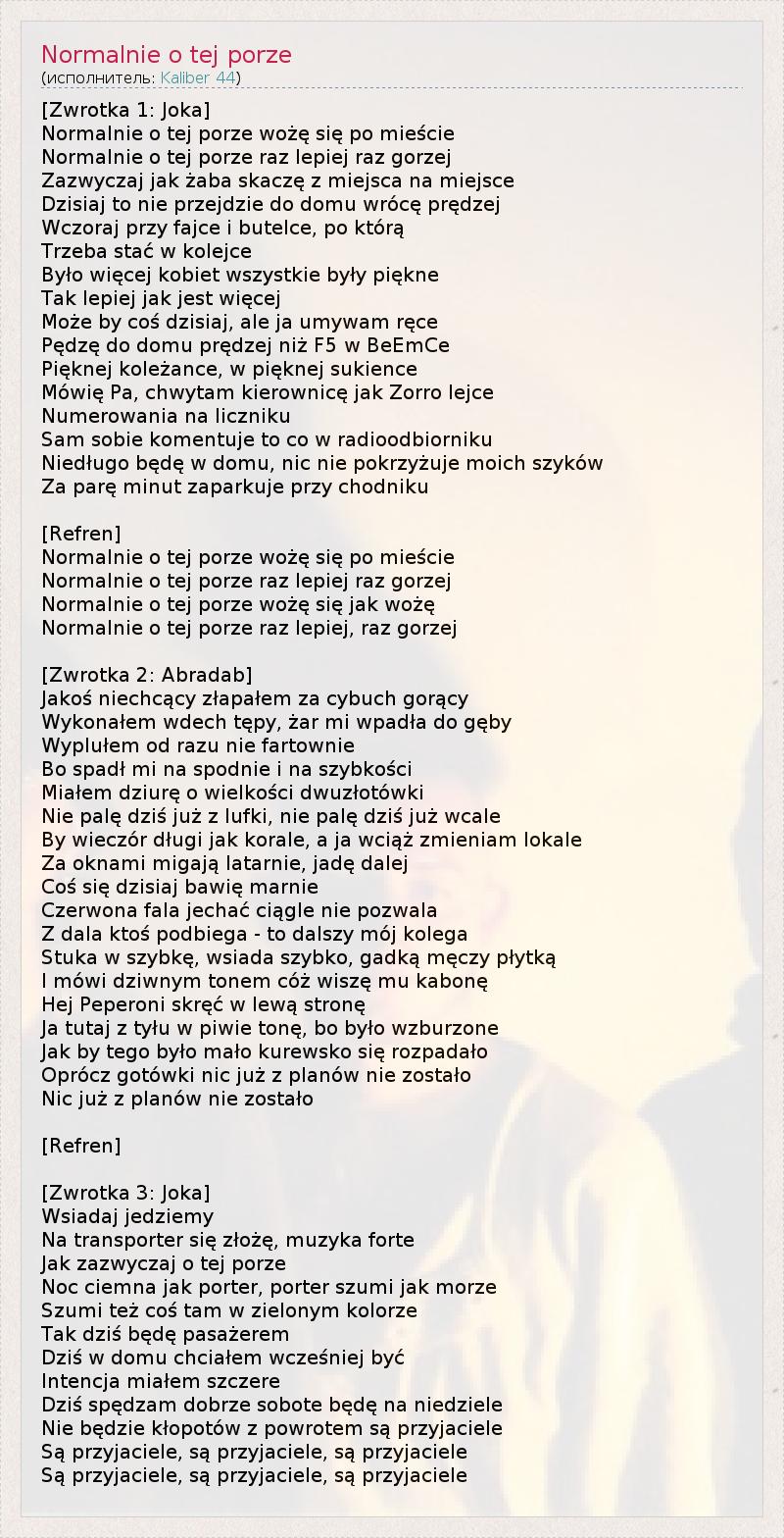 А как ты думаешь, о чем песня "Normalnie o tej porze" ?