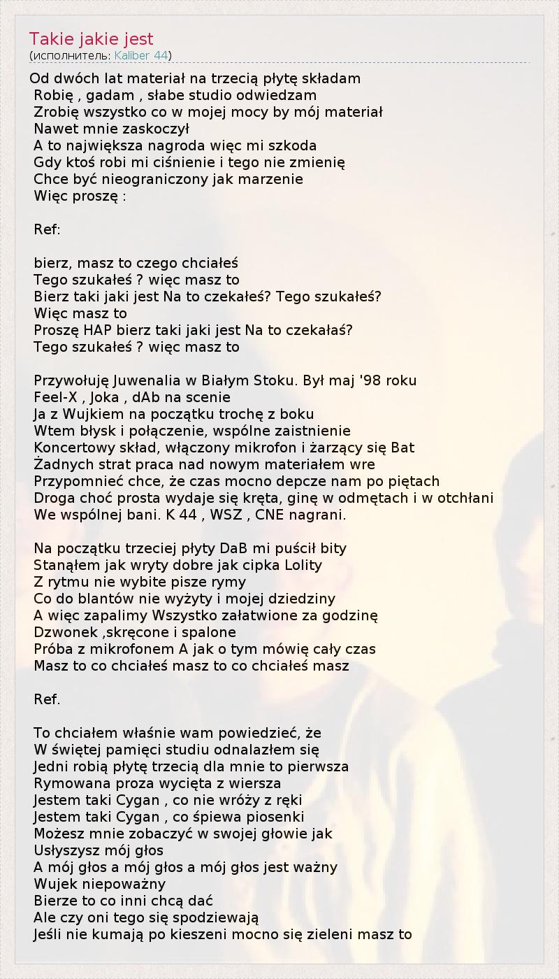 А как ты думаешь, о чем песня "Takie jakie jest" ?