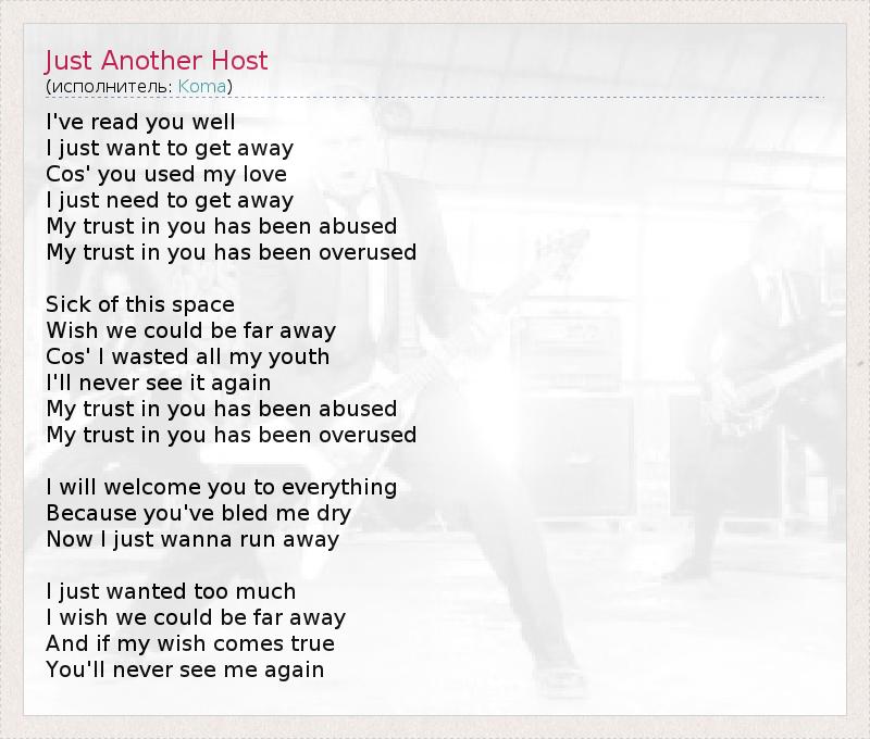 А как ты думаешь, о чем песня "Just Another Host" ?