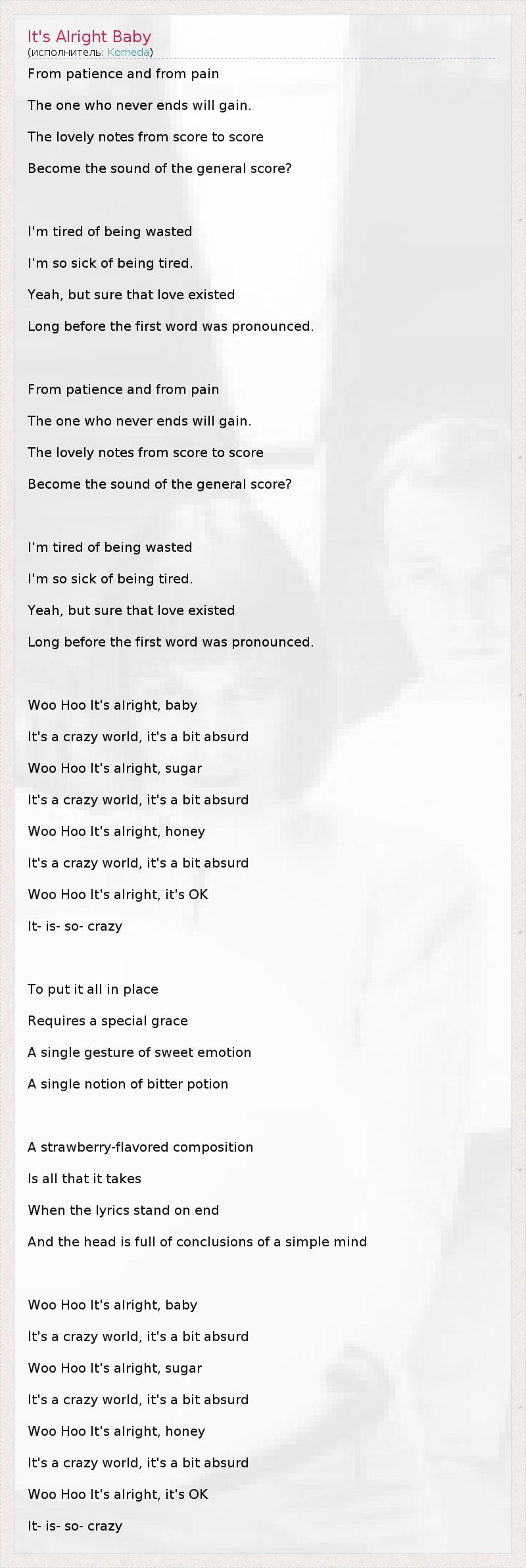 А как ты думаешь, о чем песня "It's Alright Baby" ?
