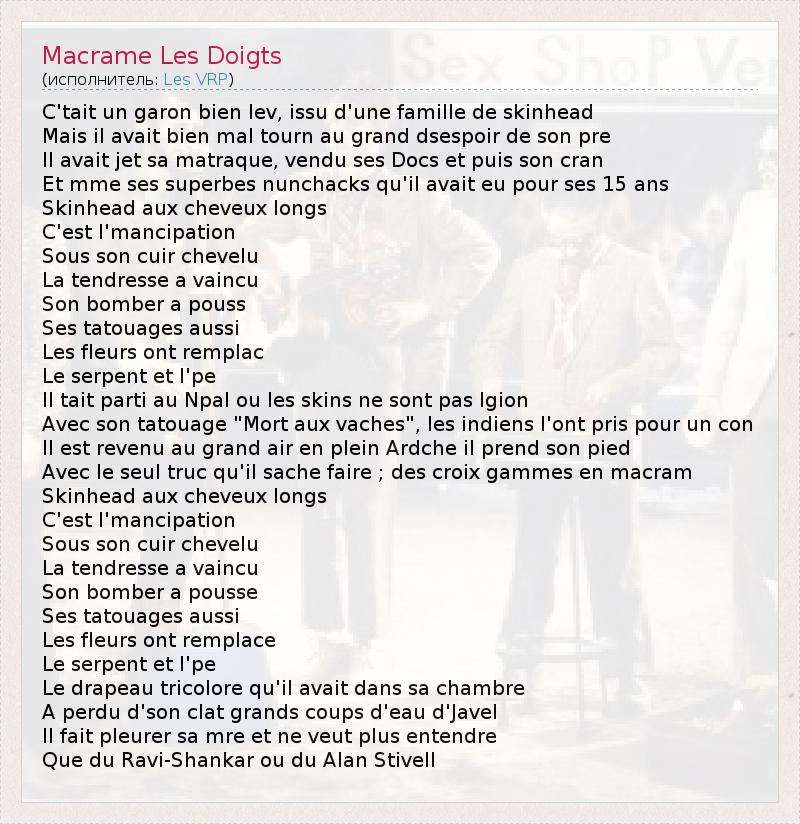 А как ты думаешь, о чем песня "Macrame Les Doigts" ?
