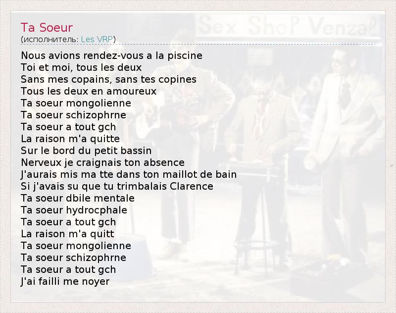 А как ты думаешь, о чем песня "Ta Soeur" ?