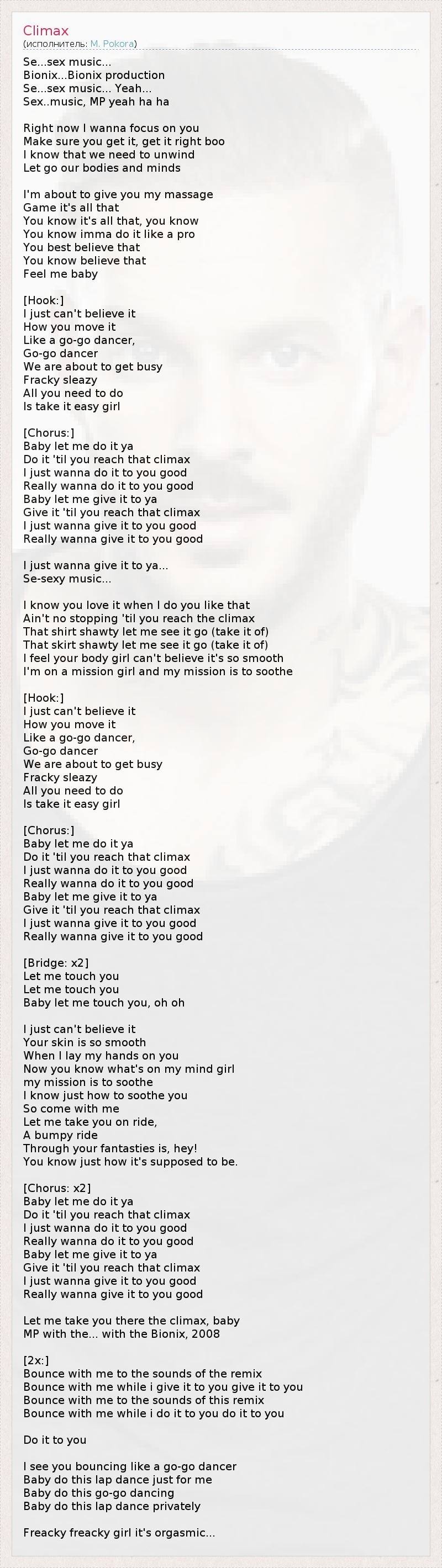 Не остановлюсь, пока ты не достигнешь кульминации.