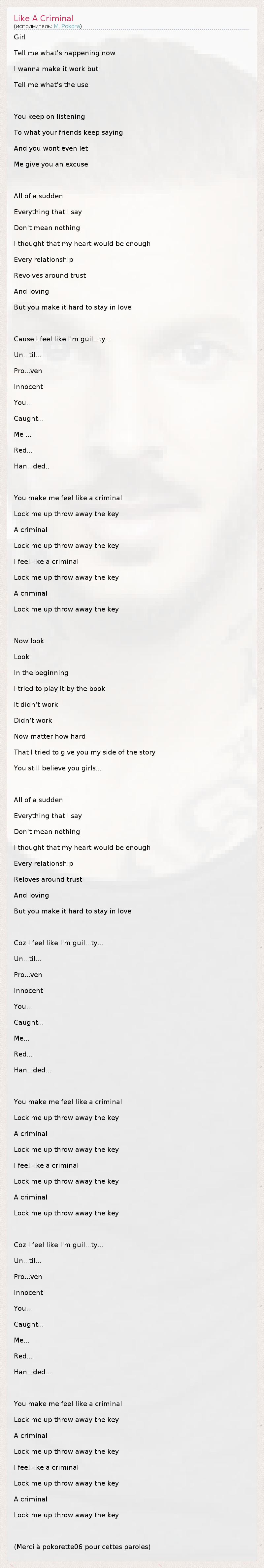 А как ты думаешь, о чем песня "Like A Criminal" ?