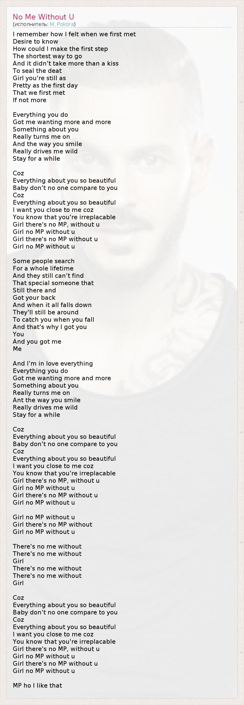 А как ты думаешь, о чем песня "No Me Without U" ?
