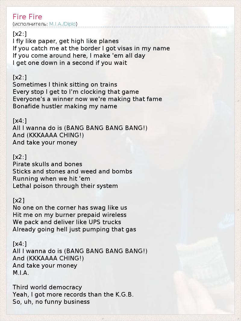 А как ты думаешь, о чем песня "Fire Fire" ?