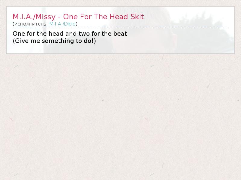 А как ты думаешь, о чем песня "M.I.A./Missy - One For The Head Skit" ?