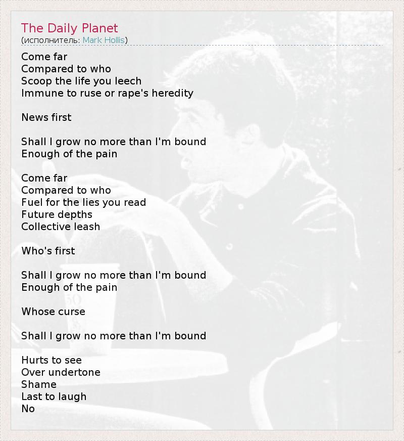 А как ты думаешь, о чем песня "The Daily Planet" ?