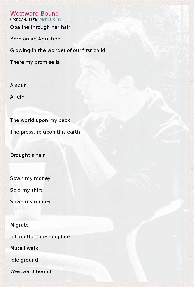 А как ты думаешь, о чем песня "Westward Bound" ?