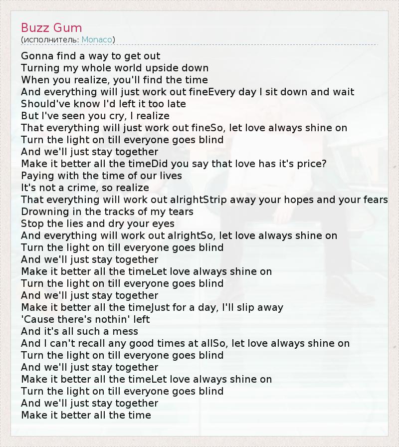 А как ты думаешь, о чем песня "Buzz Gum" ?