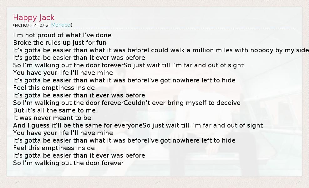 А как ты думаешь, о чем песня "Happy Jack" ?
